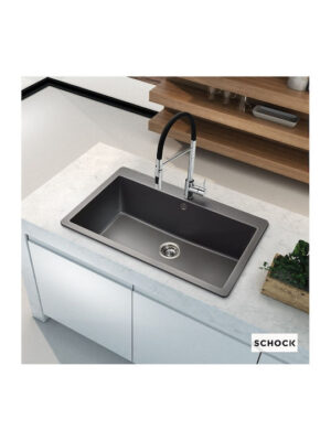 Νεροχύτης Cristadur Mono της εταιρείας Schock, κατασκευασμένος από συνθετικό γρανίτη. Είναι ανθεκτικός σε χτυπήματα, γρατσουνιές και λεκέδες, ενώ η επιφάνεια του είναι ομοιογενής χωρίς πόρους, που αποτρέπει τη συσσώρευση των βακτηρίων. Επίσης δεν αποχρωματίζεται όταν έρθει σε επαφή με χημικά καθαριστικά κουζίνας, όμως χρειάζεται προσοχή σε περίπτωση που έρθει σε επαφή με πολύ υψηλές θερμοκρασίες, καθώς τότε μπορεί να υπάρξει χρωματική αλλοίωση. Από αισθητικής άποψης, μπορεί να τονίσει τη διακόσμηση οποιασδήποτε κουζίνας χάρη στο ιδιαίτερο γκρι χρώμα του.